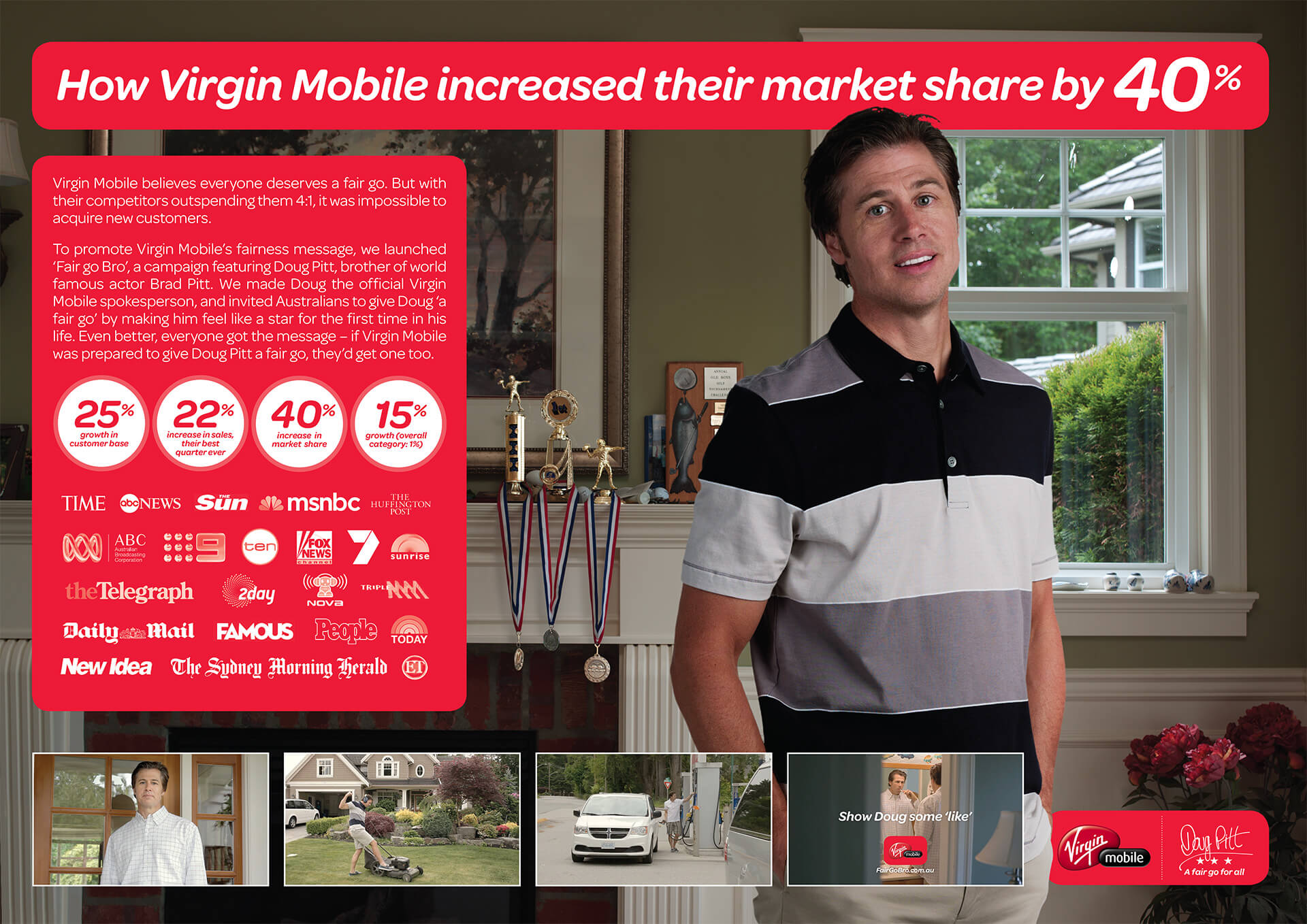 Results: $5M of earned media, 15 to 1 ROI, 40% increase in market share, Virgin Mobile ́s most successful campaign ever.